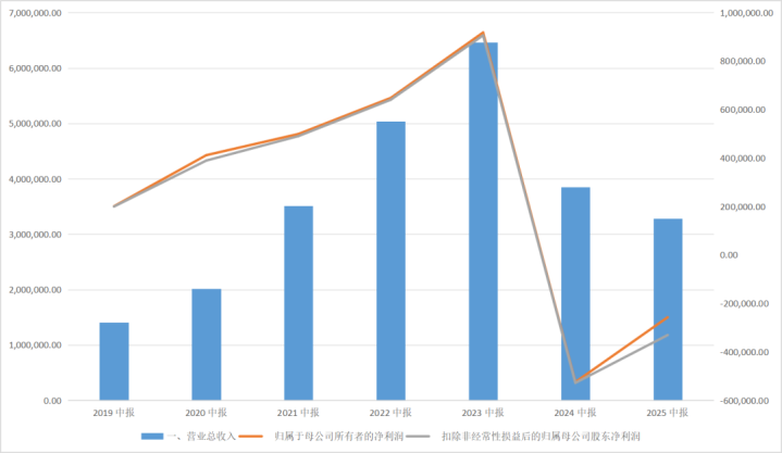 2025年上半年公司毛利率为-0.82%,同比下降8.47个百分点;净利率为-7.92%,较上年同期上升5.73个百分点。